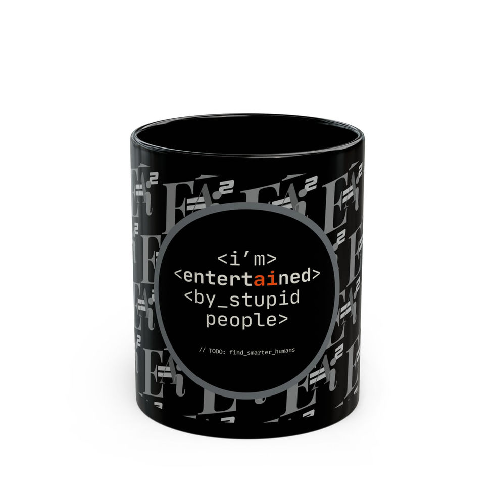 "I'm Entertained" AI Code Black Pattern Mug