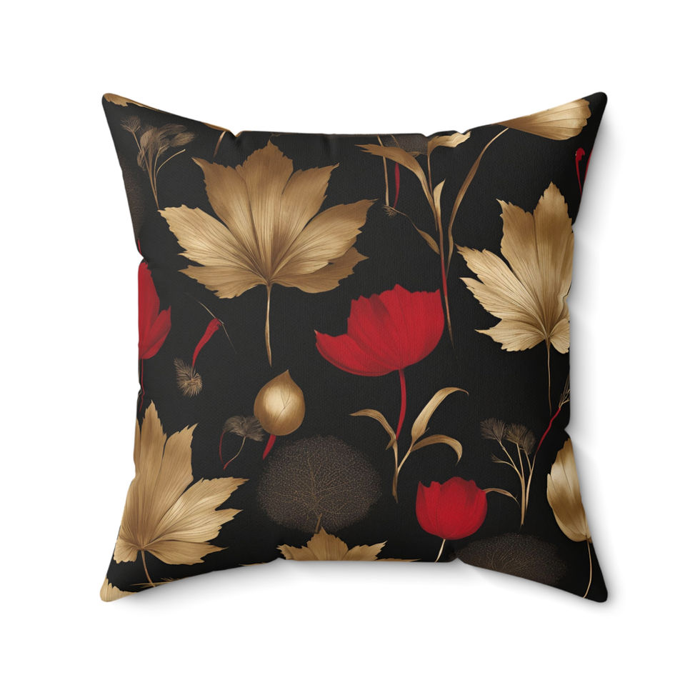 The golden bronze coloured leaves with a pop of deep red flowers on black add an Oriental luxe finish to your space.